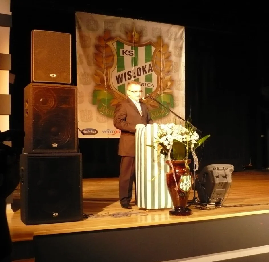 Dębica (2008). Przemawia Prezes KS „Wisłoka” Janusz Urbanik na uro­czy­sto­ściach stu­le­cia powsta­nia klu­bu. Fot. auto­ra