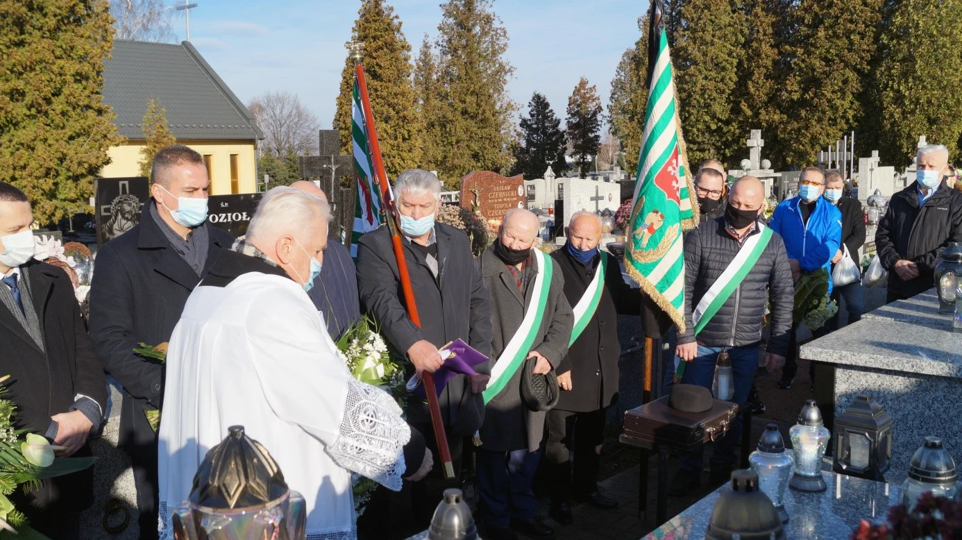 Dębica (2020). Cmentarz komu­nal­ny. Ks. Józef Dobosz czy­ni przy­go­to­wa­nie do modli­twy przy gro­bie Kazimierza Lipienia