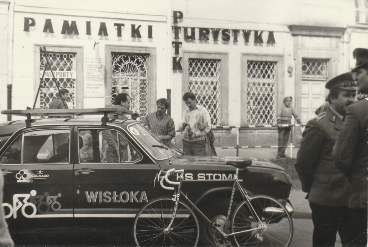 Fot. Powitanie zwycięzcy bałtyckiego wyścigu przyjaźni Stanisława Czaji, Dębica 1975 rok, źródło: Archiwum prywatne Adama Smolenia
