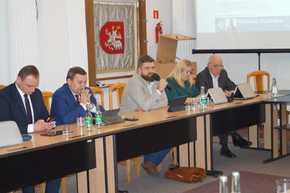 UM Dębica (13.12.2023). Sesja Rady Miejskiej, głos zabiera Mateusz Kutrzeba. Fot. autora